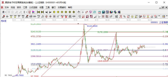思路5:用歷史極限關鍵位95至6124、1849至5178做圖。前者0.5倍位置3109,后者0.618位置3121,空間點位相似。